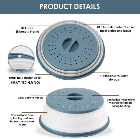 2-Pack Multicolor Foldable Microwave Oven Plate Cover for Food, Vented Collapsible Splatter Proof Guard, Microwave Splatter Cover, Bpa-Free Silicone & Plastic and Dishwasher Safe (Blue and Green)