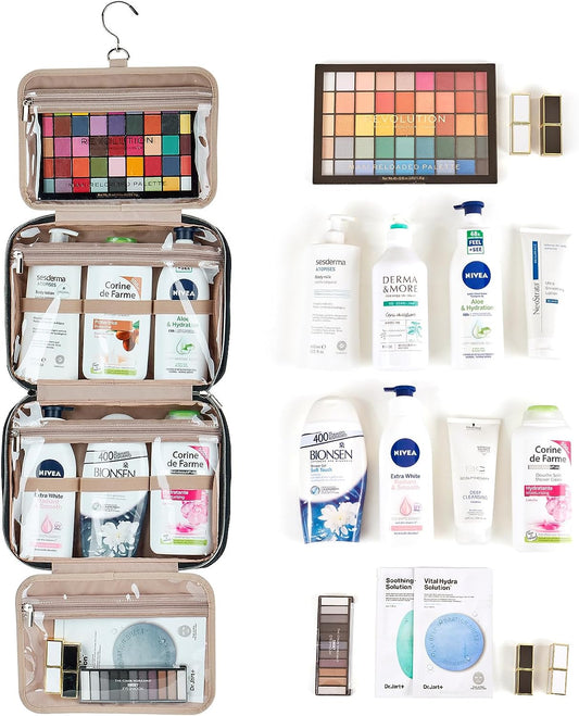 Large Hanging Travel Toiletry Bag for Women, Makeup Brush Holder with Hook, Toiletry Organizer Case for Toiletries Accessories, Black