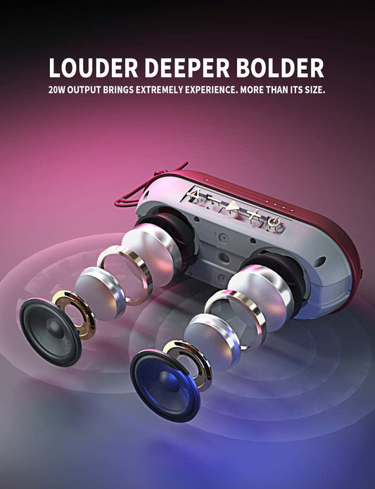 Portable Bluetooth Speakers, IPX7 Waterproof Floating 20W Wireless Speaker Loud Sound Rich Bass, Stereo Pairing Max 40W, 24 Hours Built-In Mic for Outdoors Camping Pool (Red)